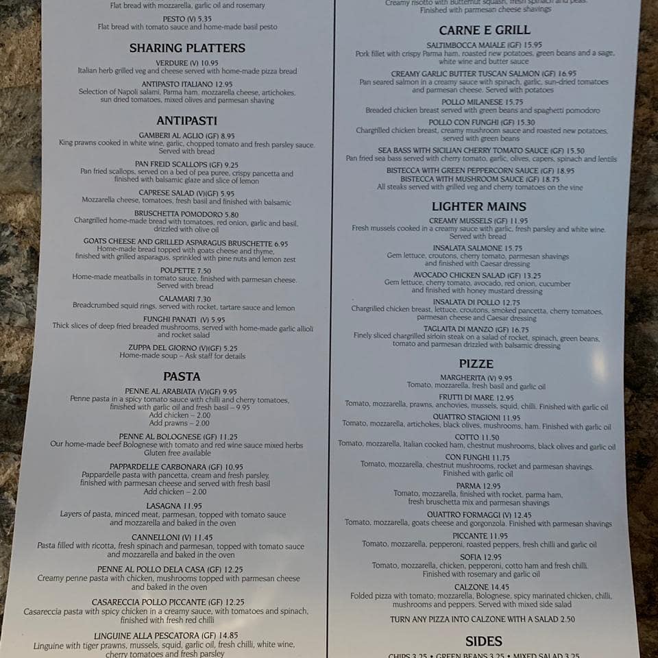 Start your journey with the Antipasti selection, featuring highlights like Gamberi Al Aglio and Calamari, perfect for sharing over a glass of Chianti Riserva. For the main event, the pizzas boast thin, crisp bases topped with fresh ingredients, each bite a symphony of Italian goodness.